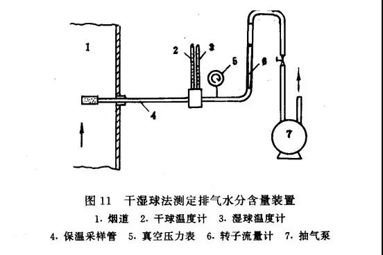 方法原理:使氣體在一定的速度下流經干、濕球溫度計。根據干、濕球溫度計的讀數和測點處排氣壓力,計算出排氣的水分含量。