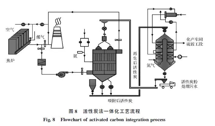 活性炭法具有系統(tǒng)占地面積小,所用物資均可市場(chǎng)采購(gòu),特別是該系統(tǒng)充分利用了焦化系統(tǒng)的各項(xiàng)資源,沒(méi)有新的污染物產(chǎn)生的優(yōu)點(diǎn)。但該工藝存在大規(guī)模改造應(yīng)用的經(jīng)濟(jì)性較差問(wèn)題。