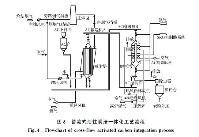 活性炭一體化工藝從煙氣和活性炭運(yùn)動(dòng)方式看可分為兩類:錯(cuò)流式和逆流式。錯(cuò)流式中活性炭和煙氣分別作垂直運(yùn)動(dòng)和水平運(yùn)動(dòng),兩者在運(yùn)動(dòng)方向垂直接觸,在國(guó)內(nèi)應(yīng)用相對(duì)較早,典型有太鋼、日照等。逆流式工藝中活性炭自上而下、煙氣自下而上,兩者逆流相向接觸,在國(guó)內(nèi)河鋼邯鋼將逆流式工藝首次應(yīng)用于燒結(jié)煙氣處理。
