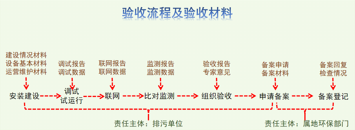 重點排污單位自動監測設備安裝聯網或者改造完成后,應由購置建設的主要出資方按有關技術規范(指南)組織驗收,驗收材料交各屬地生態環境管理部門備案,屬地生態環境管理部門出具驗收備案回執。